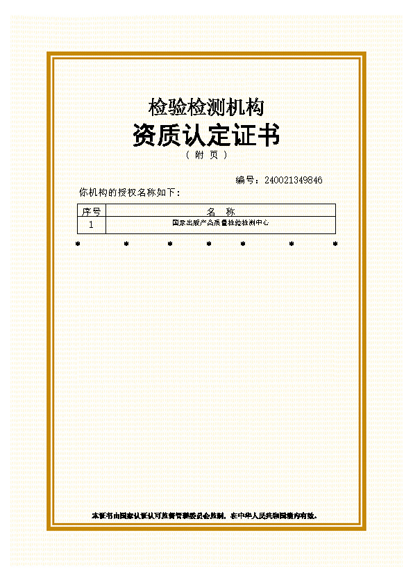 中国合格评定国家认可委员会实验室认可证书(中文)